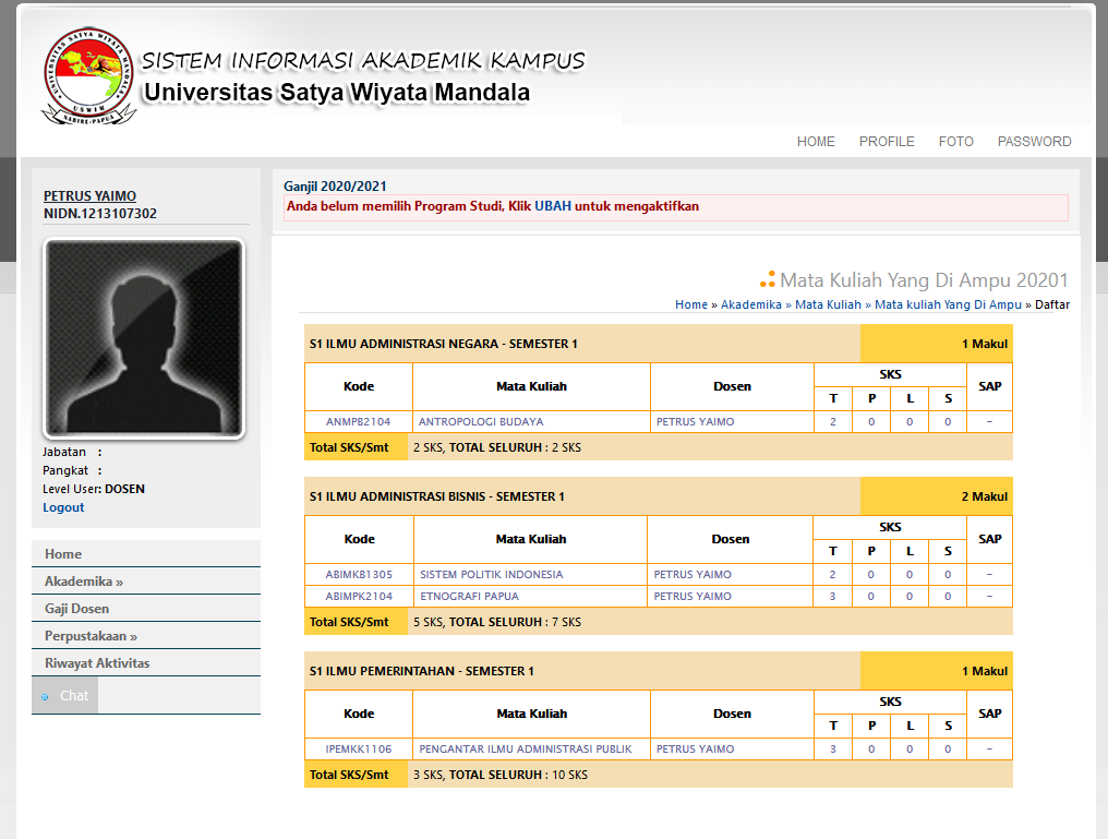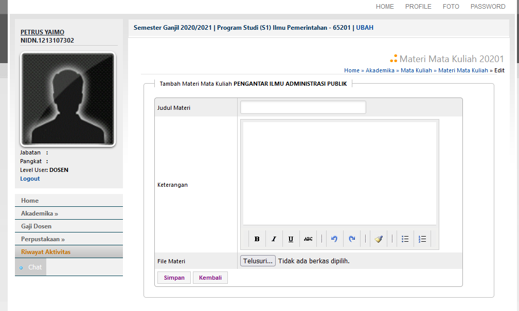 Mata Kuliah yang Diampu, RPS (kontrak Kuliah), Materi Mata Kuliah, Tugas Mata Kuliah, Soal UTS UAS Mata Kuliah