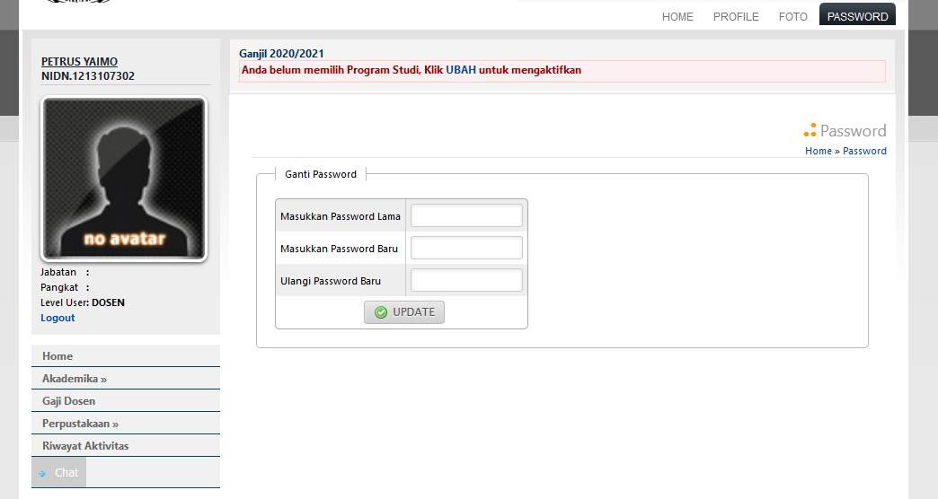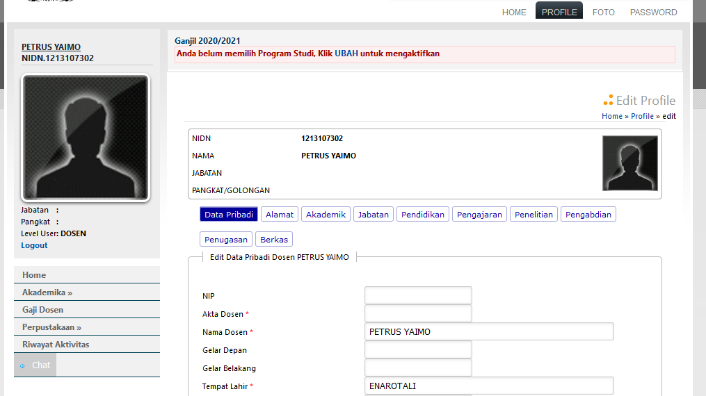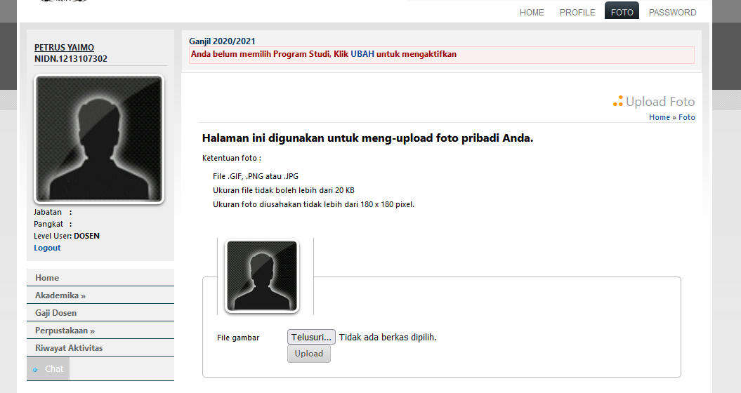 1. Pilih menu Akun >> Edit Photo untuk merubah photo dosen