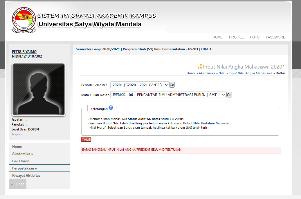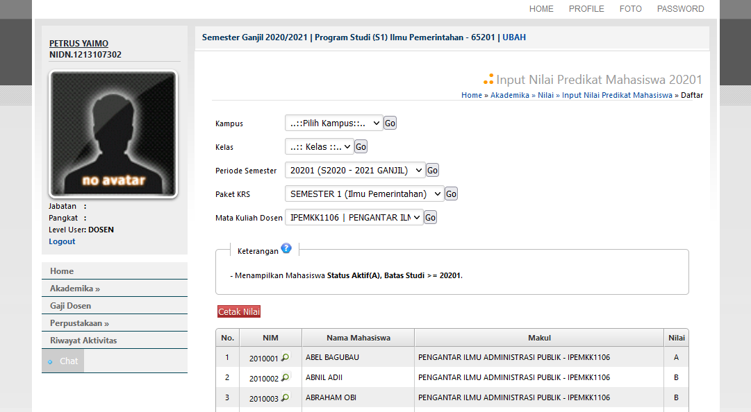 Input Nilai Angka Mahasiswa, Input Nilai Predikat Mahasiswa