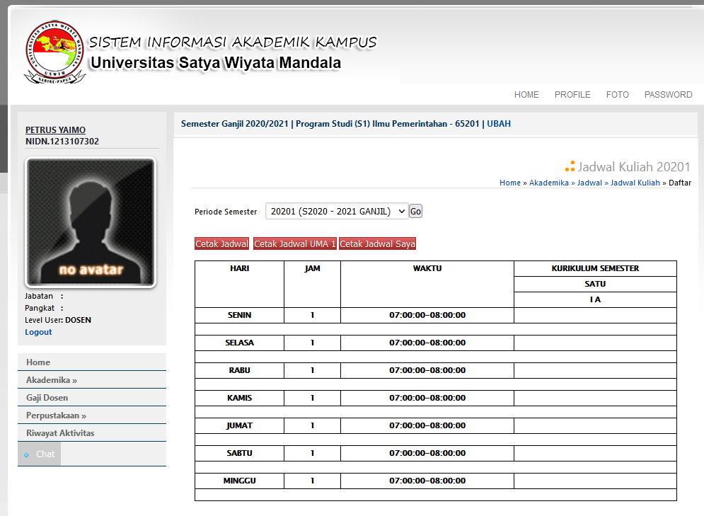 1. Pilih menu Akademika >> Jadwal untuk melihat jadwal pribadi dosen