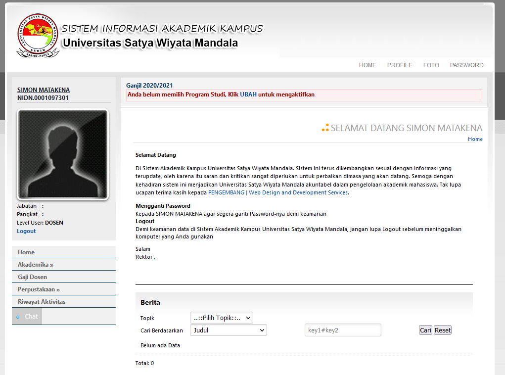 Akses Layanan Sistem Informasi Akademik dengan mengakses URL
